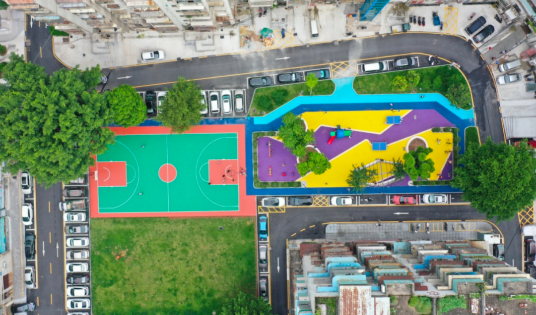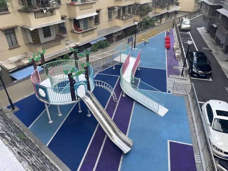 蓬江区象山社区利用闲置空地建设童梦乐园,满足儿童游玩需求。