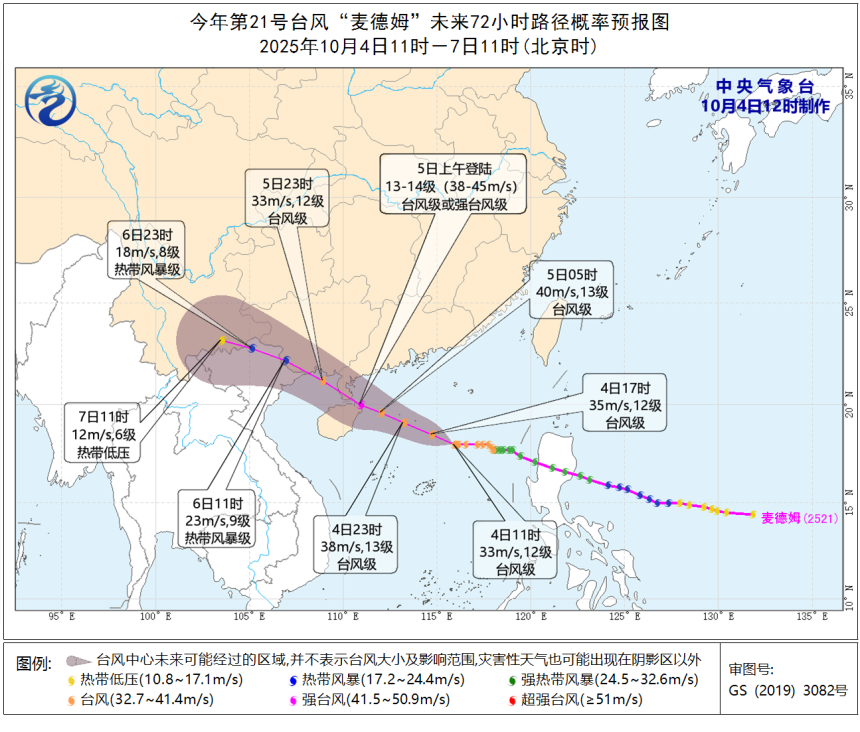 预计,“麦德姆”将以每小时25至30公里的速度向西偏北方向移动,强度逐渐增强10倍配资公司,并向广东西部到海南岛东部一带沿海靠近,将于5日白天在广东电白至海南万宁一带沿海登陆(台风级或强台风级,13至14级,38至45米/秒),登陆后强度逐渐减弱。